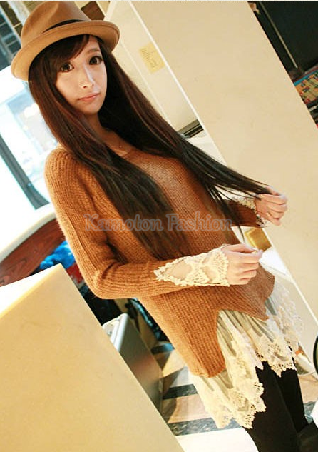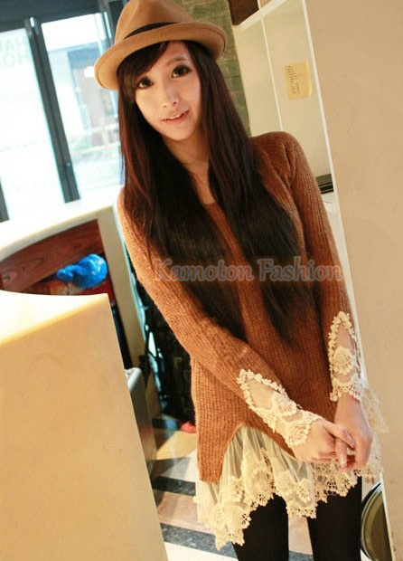 1012 Vintage Lace Hem Sweater Stitching off Two Knitting Wool