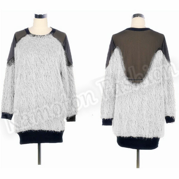 1026 Womens Long Sleeves Backless Transparent Soft Fur Blouse Tops